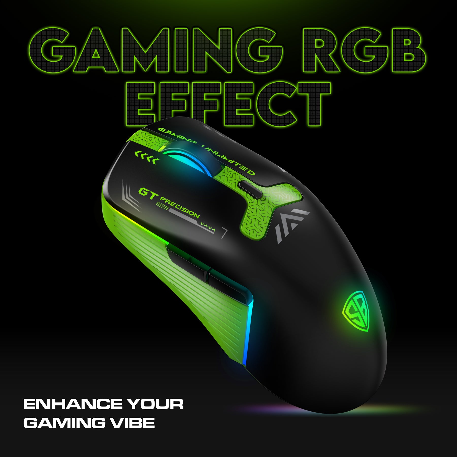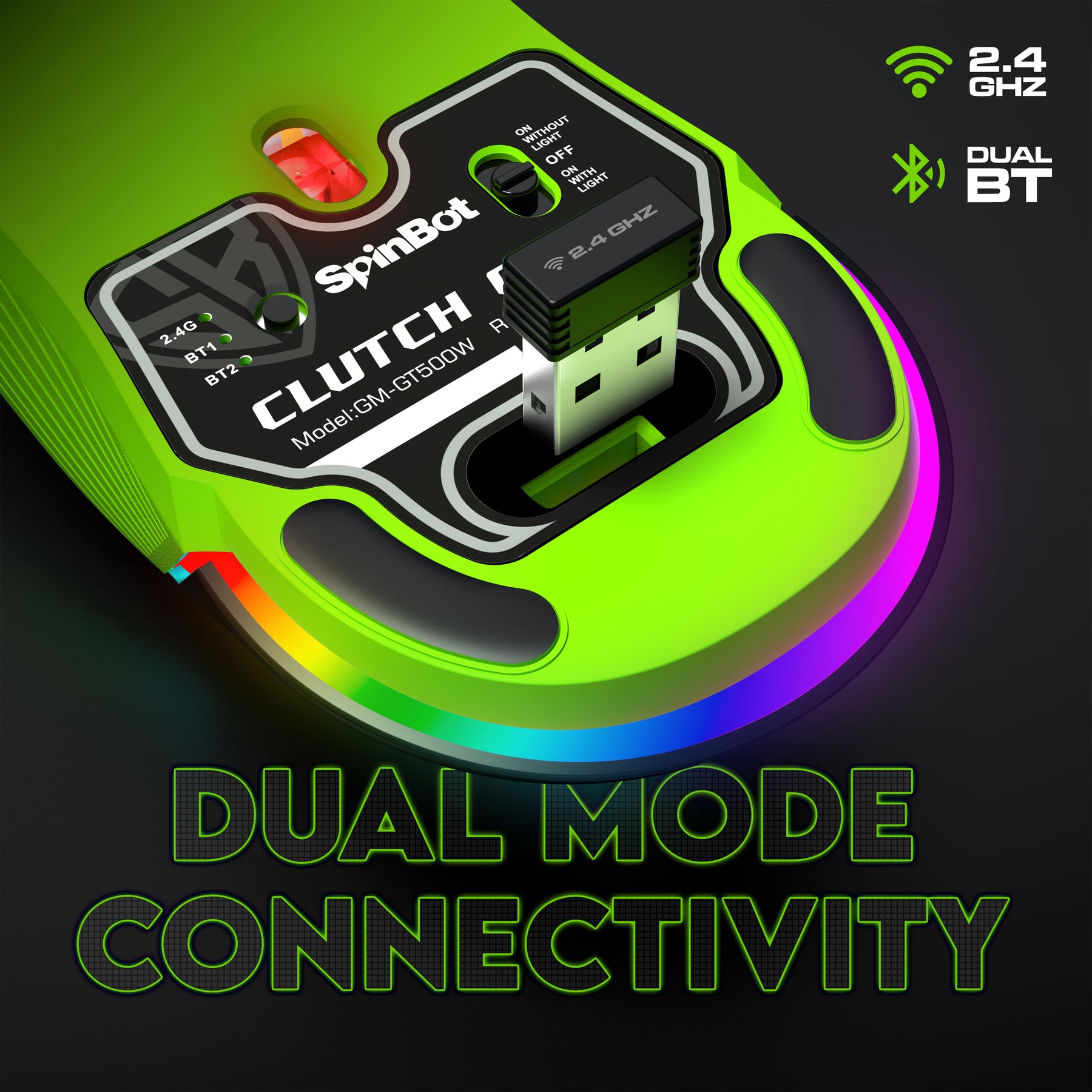 SpinBot Clutch GT500 Wireless Gaming Mouse | 4800 DPI Sensor | Multi Connectivity (2.4GHz + BT1 + BT2) | Black & Green