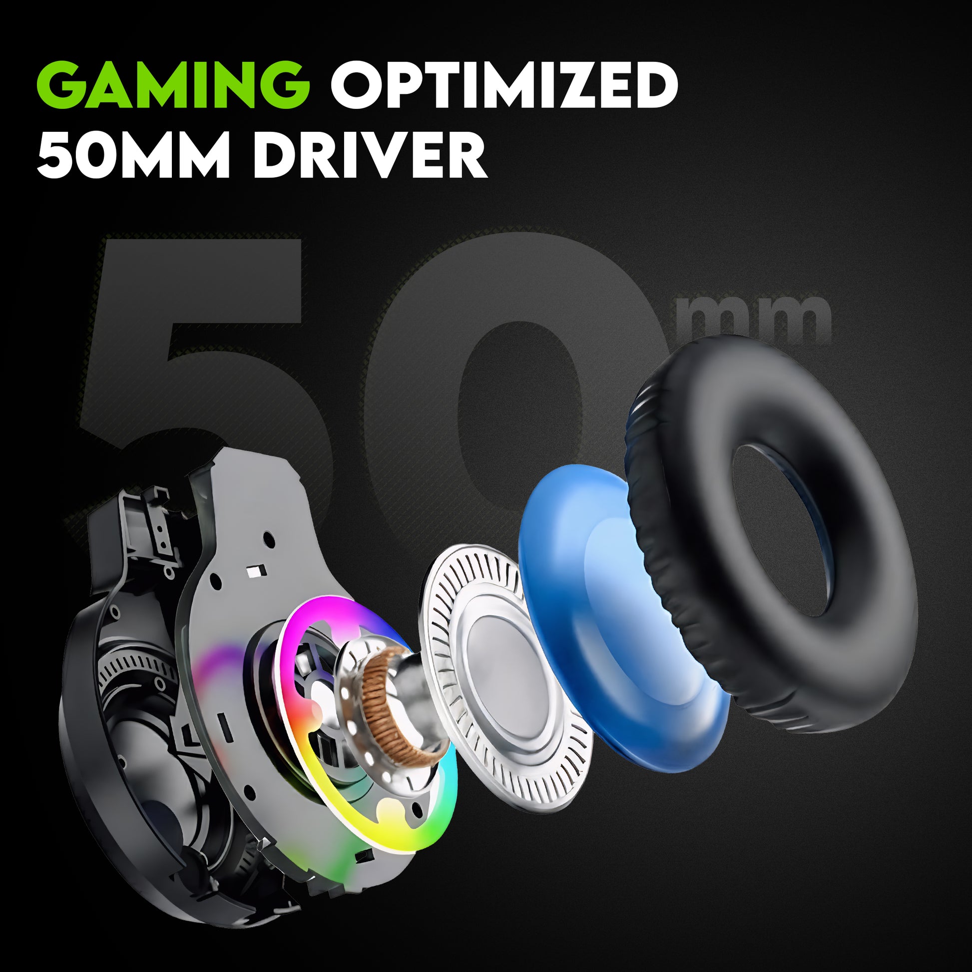 SpinBot BattleBudz H2 Wired Gaming Headphone with 50mm Drivers, RGB Lights, Suspension Headband, 1.8m Braided Cable & Boom Mic