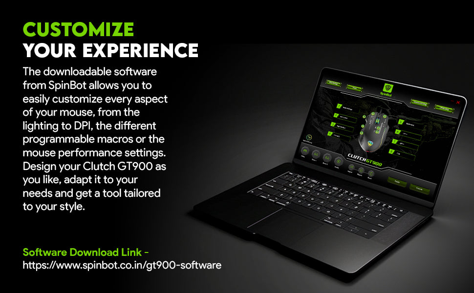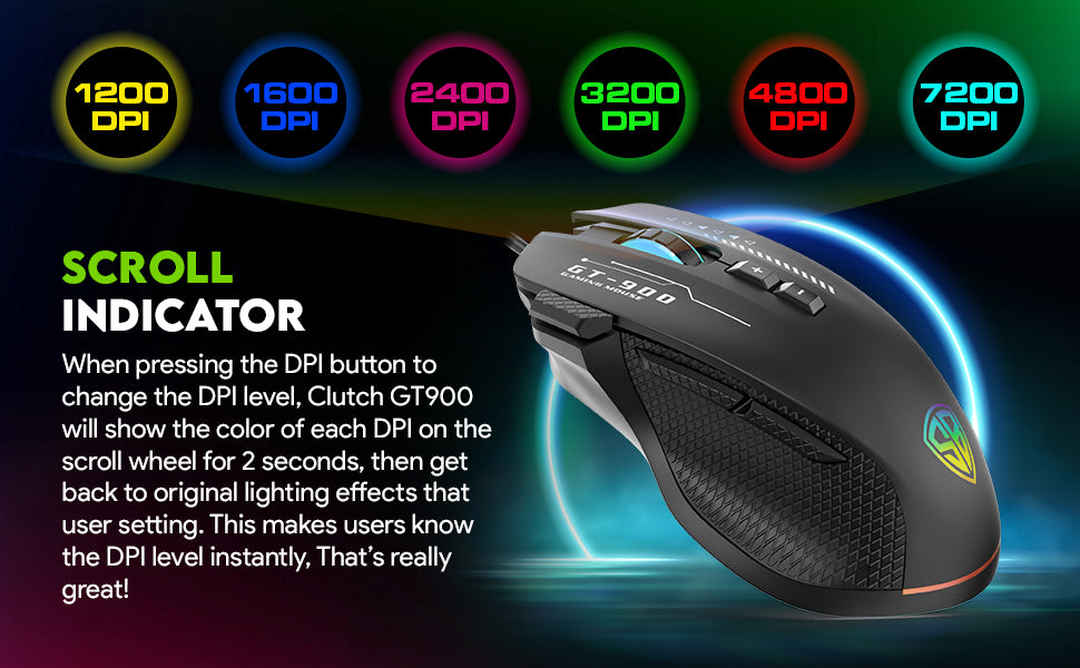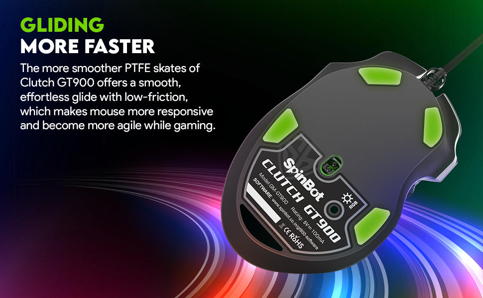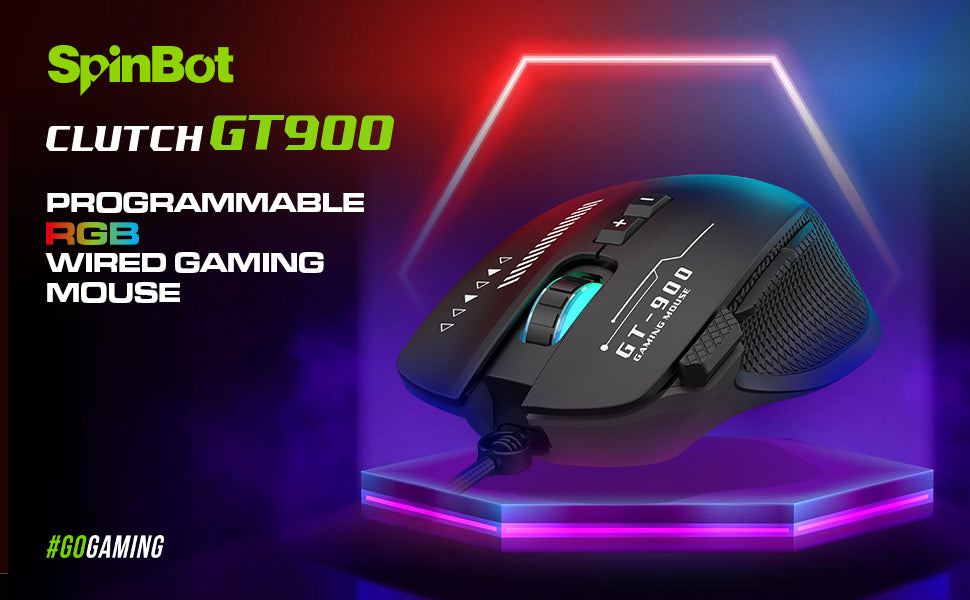 SpinBot Clutch GT900 with 7200 DPI Gaming Sensor |8 Programmable Buttons | RGB Wired Optical Gaming Mouse (Black)