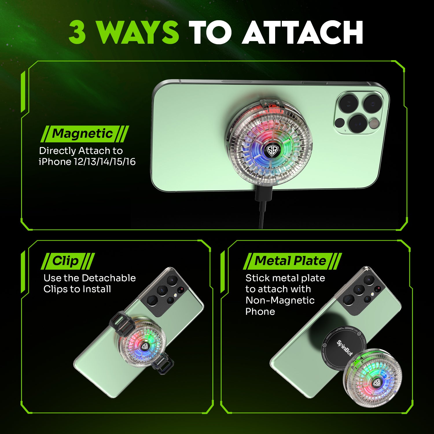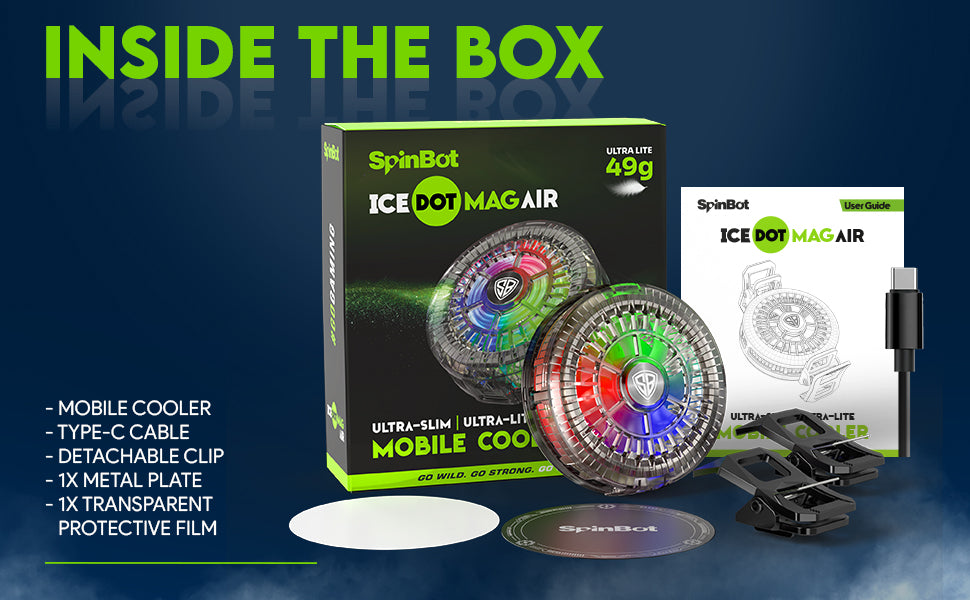 SpinBot IceDot Mag Air Ultra-Slim Ultra-Lite Magnetic Mobile Phone Cooler I 2 Speed Gears for Temperature Control I 15W Freeze Cooling I For iPhone 12/13/14/15/16, iPads and Android Smartphones