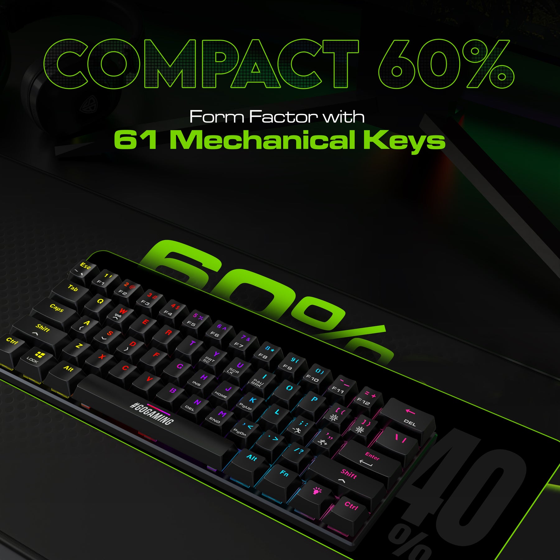Ultra-Compact 60% Design: A minimal layout built for modern gamers, the 61-key setup frees up desk space for swift mouse movement and cleaner aesthetics without sacrificing essential controls.