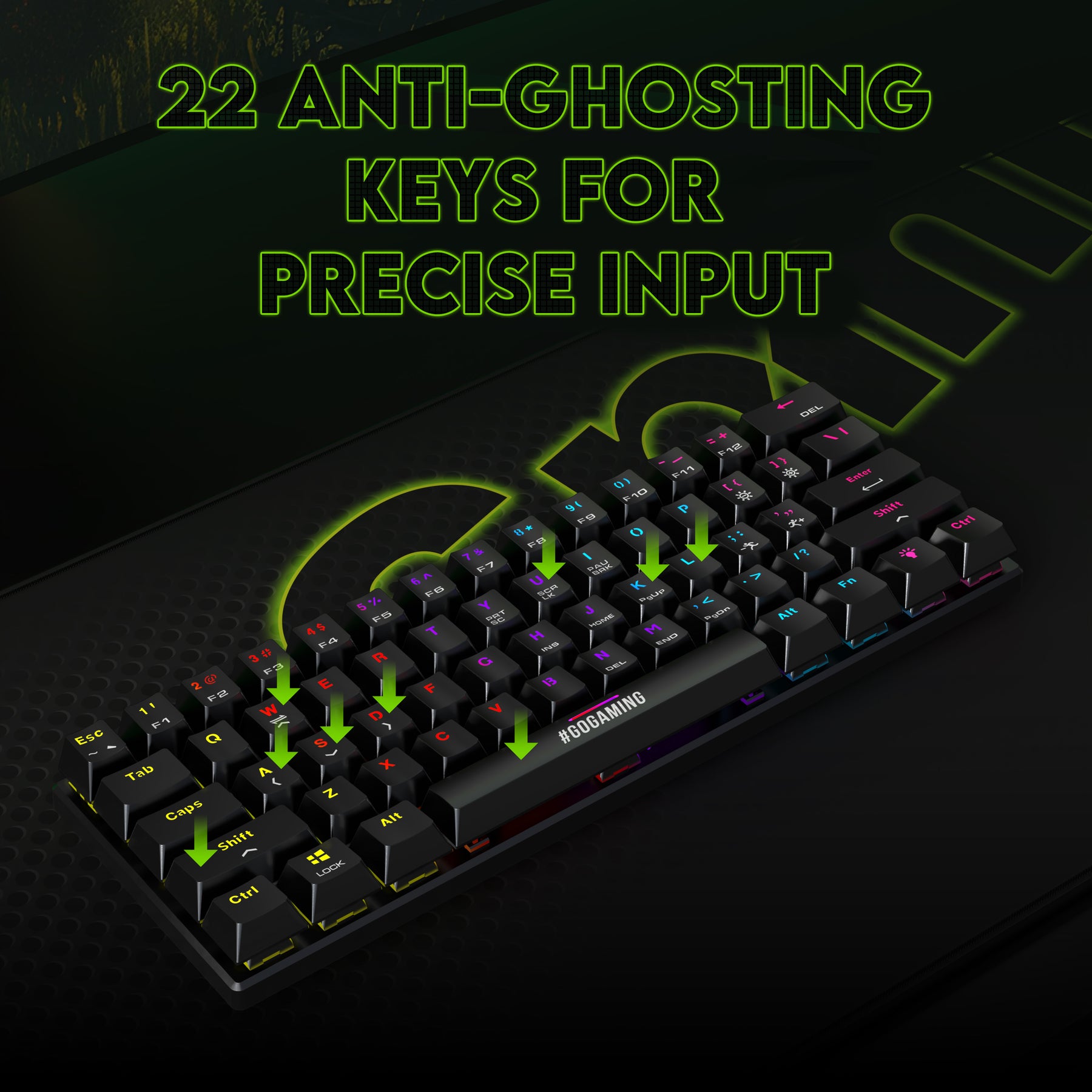 Enhanced Anti-Ghosting Control: With 22-key rollover, every keystroke registers flawlessly, giving you total confidence in competitive gaming or high-speed typing.